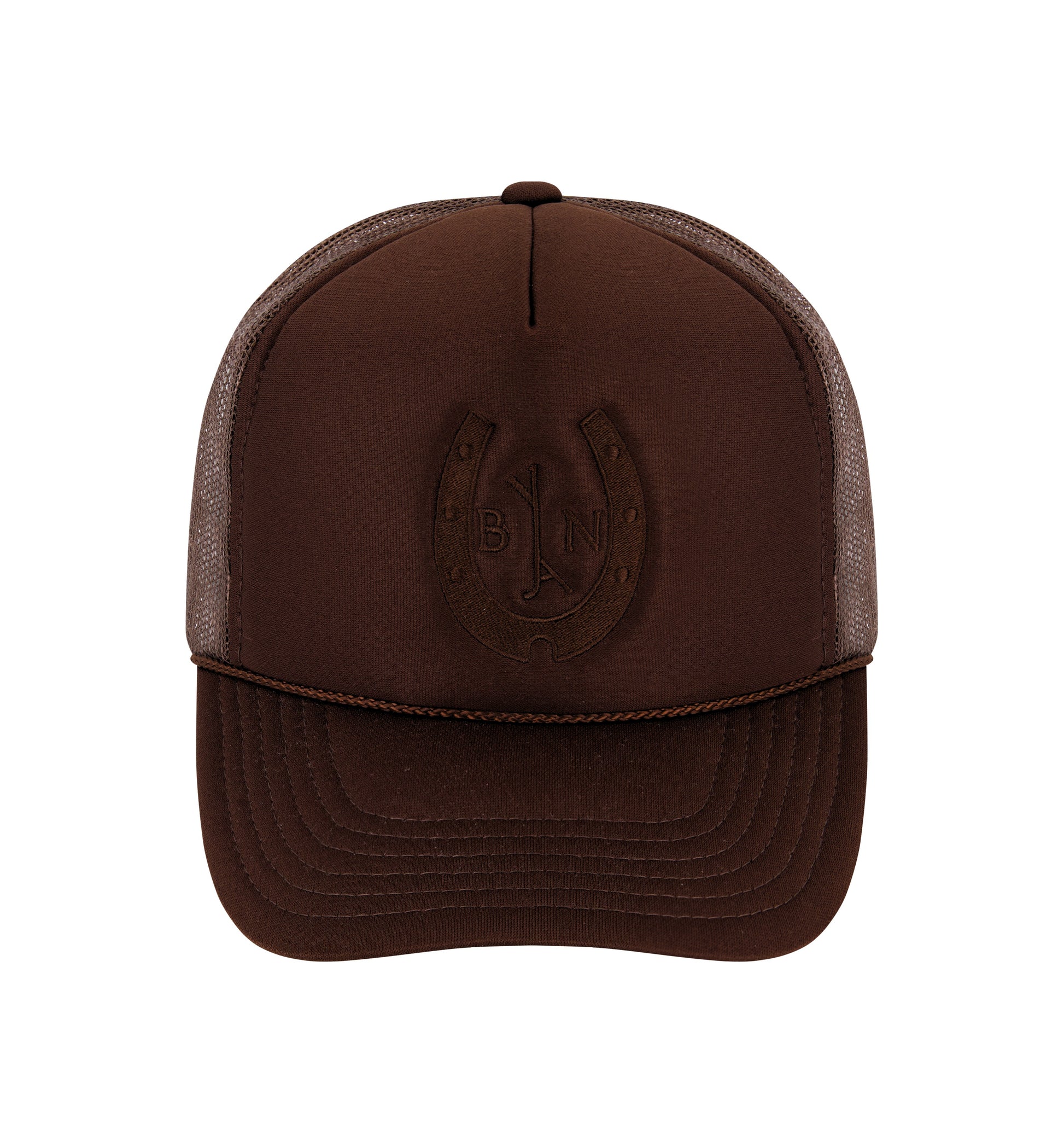 A modern classic reimagined in deep, earthy tones. The Banyan Horseshoe Trucker Hat pairs a high crown silhouette with a tonal embroidered crest, offering a bold yet understated aesthetic. Thoughtfully detailed with a delicate rope accent and breathable mesh back, it’s designed for effortless style and comfort.
